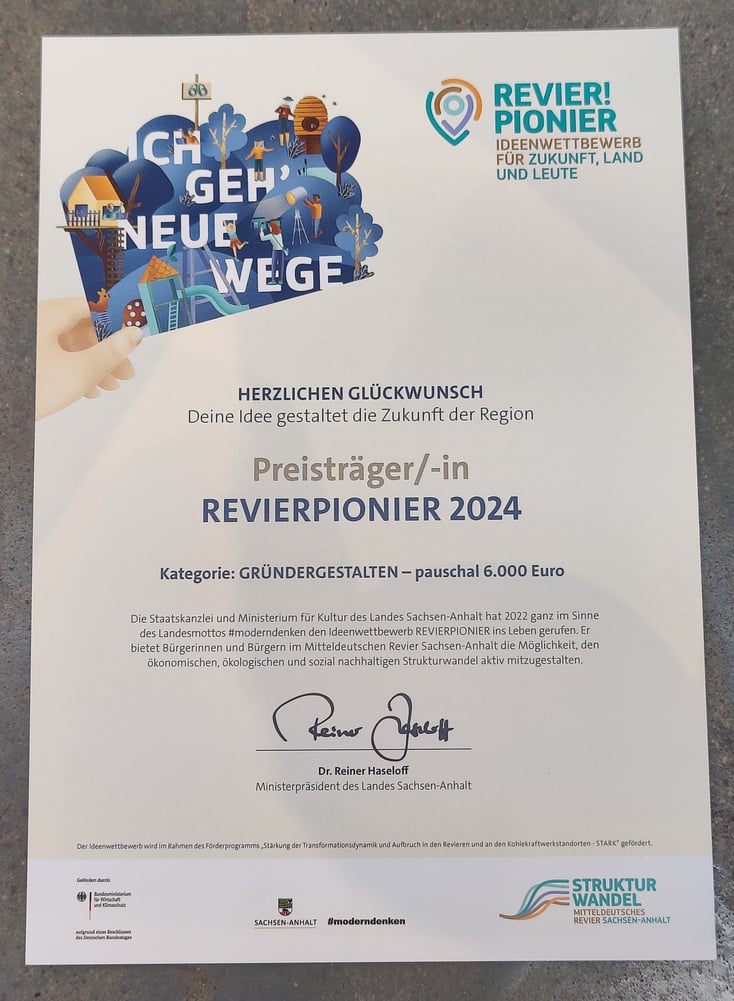 Umso erfreulicher ist es dann, wenn diese Arbeit fruchtet! Am 14. September waren wir nach Freyburg eingeladen, um als Gewinner in der Kathegorie "Gründergestalten" den Preis entgegen zunehmen.